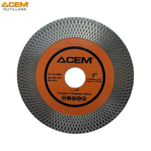 Le disque diamanté ACEM P 125 mm est spécialement conçu pour les travaux de coupe et de démoulage de bore (ouverture de trous) dans des matériaux délicats comme la porcelaine, le grès cérame, la céramique ou le quartz. Grâce à son trait de coupe de 1,6 mm, il offre précision, propreté et performance, même sur des matériaux très durs.