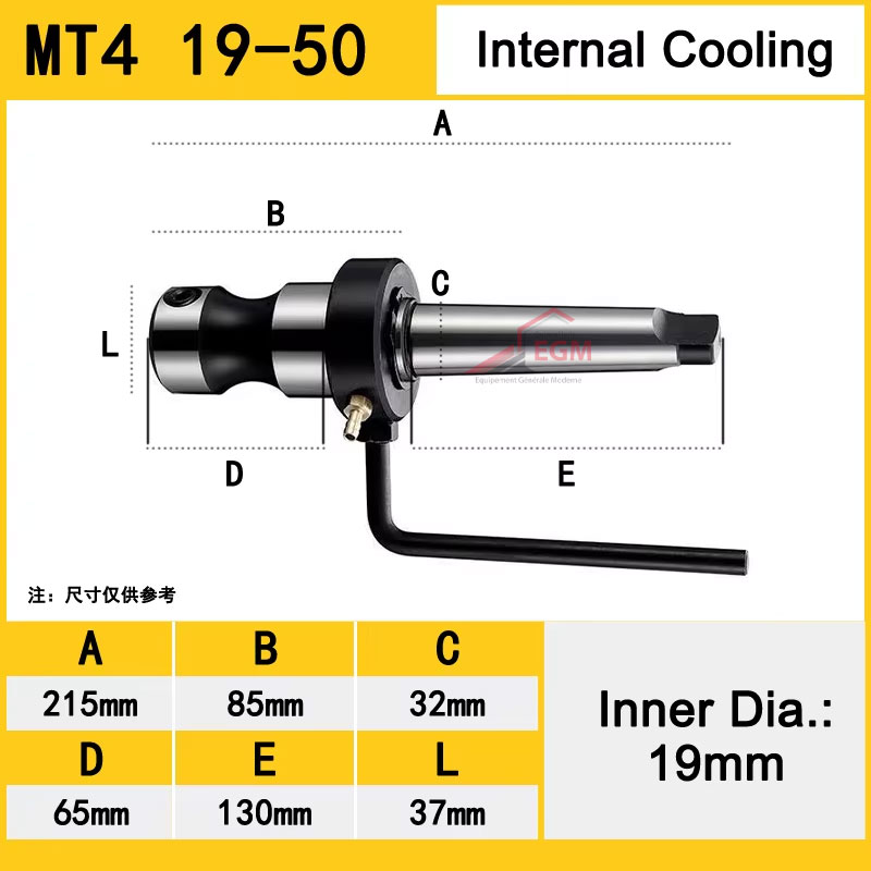 Cet adaptateur à refroidissement interne est spécialement conçu pour les perceuses magnétiques utilisant un cône Morse MT4. Il assure une fixation fiable des outils avec un diamètre intérieur de 19 mm.