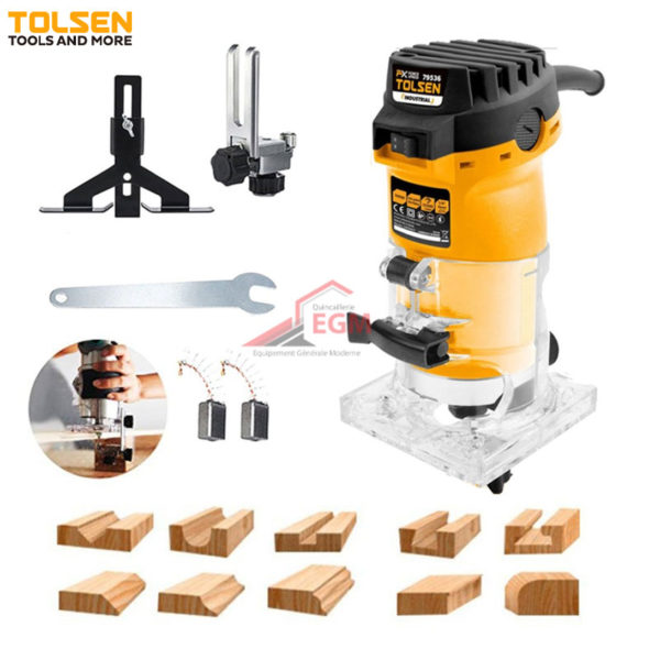 - Diamètre de serrage pour la fraise : 1/4″ et 6 mm