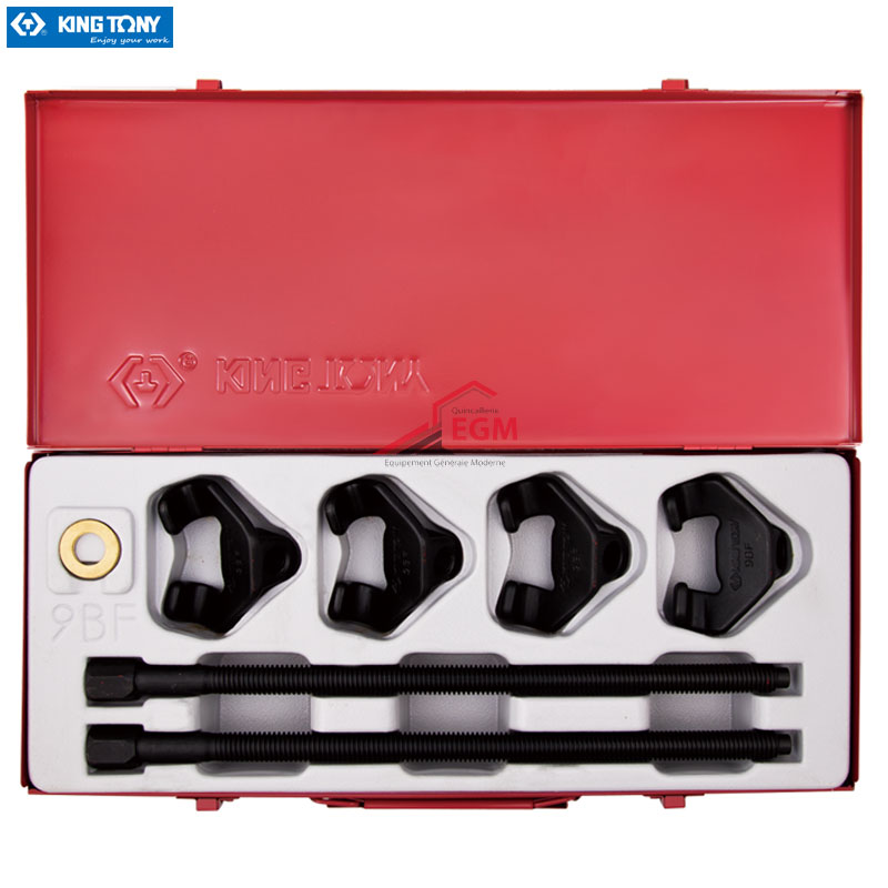 Le kit KING TONY 9BF11 est conçu pour le serrage des ressorts d'amortisseurs. Spécifications techniques Longueur, mm 85-370 Boulon d'extrémité, mm 21 Poids, kg 2.40