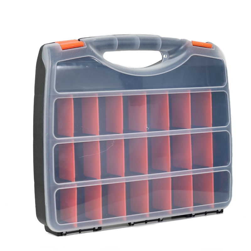 BOITE DE RANGEMENT PLASTIQUE NOIR & ORANGE 26 CASSES MJ-TOOLS