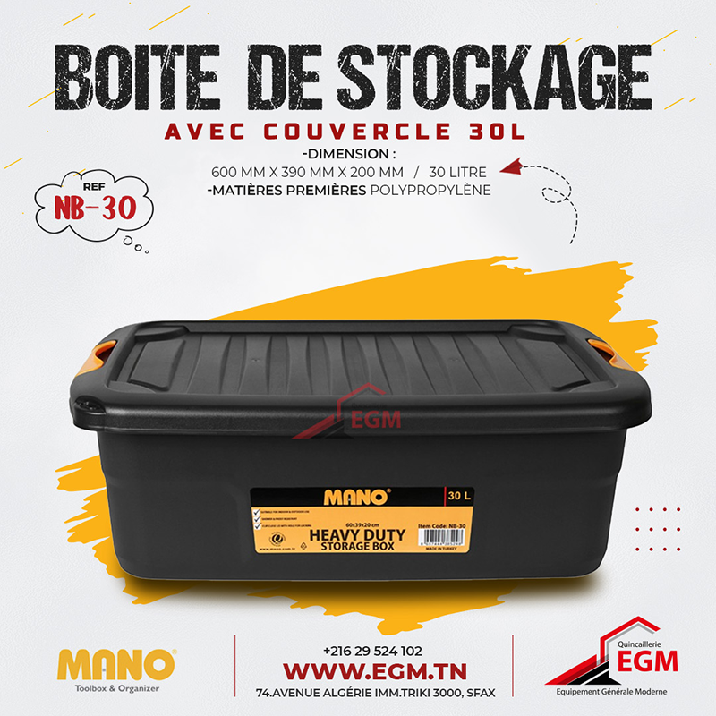 BOITE DE STOCKAGE AVEC COUVERCLE 30L MANO