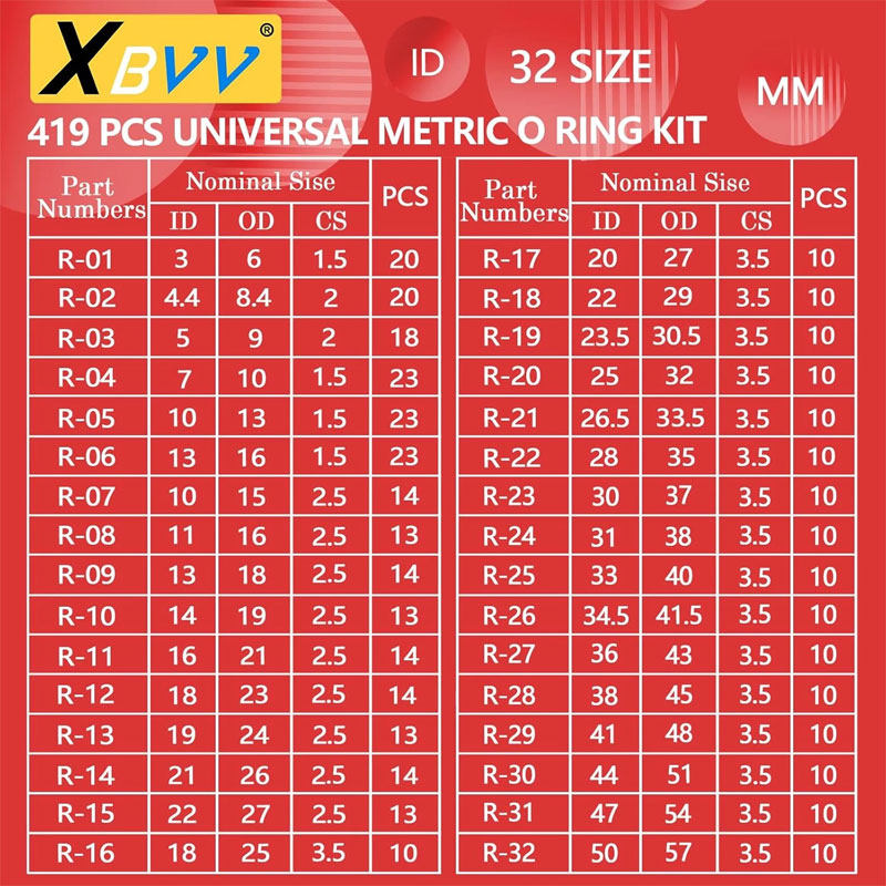 Boîte de Joints Toriques – 419 PCS – 3 à 50 mm – Rouge