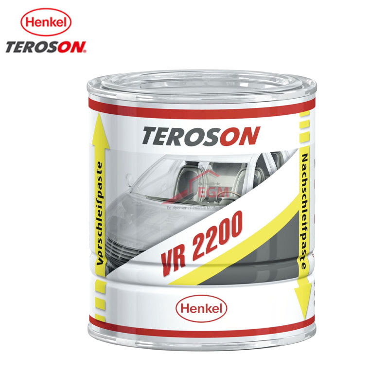 TEROSON VR 2200 grossières et fines, sont de broyage des pâtes à base d'huile et de corindon solubles abrasifs synthétiques d'eau. Les deux composants sont réunis dans un boîte avec deux chambres et ouvertures séparées. La pâte grossière est utilisé pour le pré-broyage et le pâte fine est utilisée pour obtenir la finition de surface souhaitée. Les deux TEROSON VR 2200 composés sont faciles à utiliser, ne pas courir sur les surfaces à broyer et peut, comme ils sont solubles dans l'eau, se rince facilement les composants après broyage.