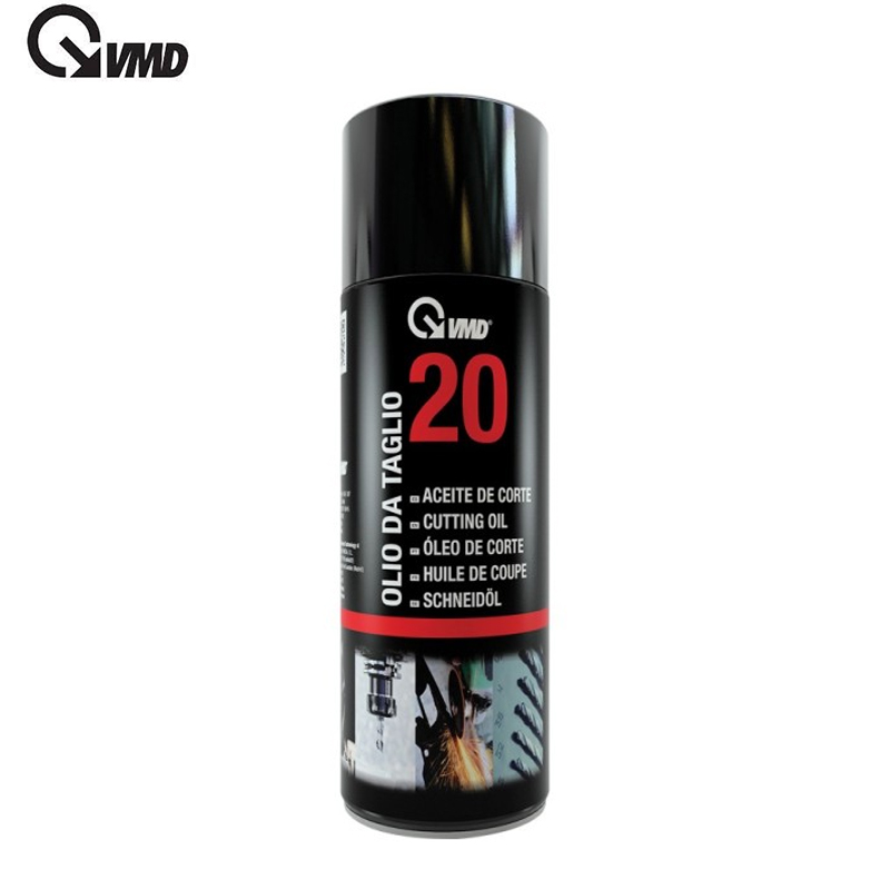 \nLe bouteille huile de coupe VMD-20 400ML est un lubrifiant en aérosol spécialement conçu pour les opérations de coupe, perçage, filetage, taraudage, sciage et usinage des métaux. Sa formule réduit considérablement la friction et la chaleur générée par les outils, ce qui prolonge leur durée de vie et garantit une coupe plus nette et précise. Cette huile de coupe favorise également l’évacuation des copeaux, améliore la qualité de finition des pièces et limite les risques de grippage. Grâce à sa présentation en spray, elle est facile à appliquer même sur des zones difficiles d’accès, assurant une lubrification uniforme et efficace.