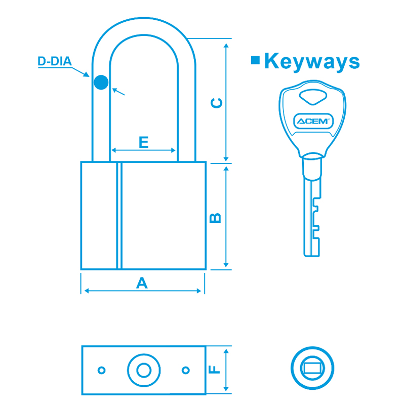 Dimensions : A: 70 mm, B: 48 mm, C: 34.1 mm, D: 11.8 mm, E: 33.2 mm, F: 18 mm