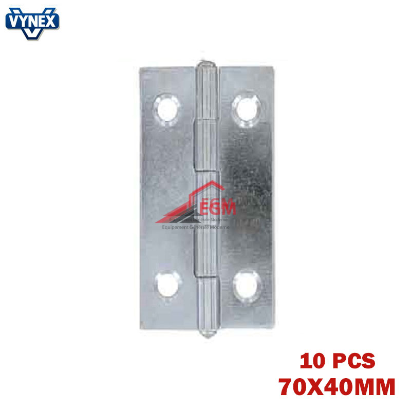 CHARNIERE FIXE EN ACIER ZINGUE 70X40MM 10PCS VYNEX | EGM.tn - Tunisie