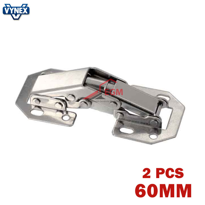 CHARNIERE INVISIBLE EN APPLIQUE A RESSORT 60MM OUVRE 90° 2PCS VYNEX