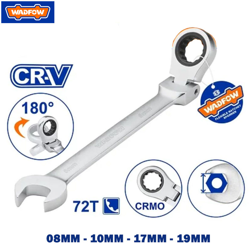 Spécifications (partagées par tous les modèles) : Matériau du corps : Cr-V (acier au chrome vanadium) Matériau de la tête du cliquet : CrMo (acier au chrome-molybdène) Rotation de la tête : pivotante à 180° Construction : forgée, traitée thermiquement Finition : chromée, finition mate