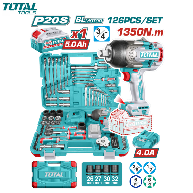 La CLE A CHOC 3/4″ 1350NM 20V 5AH THKTHP31262 est un ensemble professionnel ultra-complet intégrant une clé à chocs sans fil puissante de 1350Nm et un coffret d’outillage complet. Grâce à son moteur brushless 20V et sa batterie 5.0Ah, elle offre une puissance de serrage exceptionnelle et une autonomie optimale pour tous les travaux mécaniques intensifs.