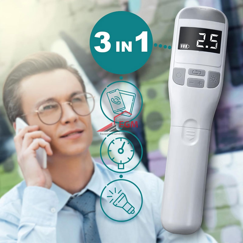 - Lampe de poche LED : cette lampe de poche lumineuse intégrée dans le boîtier de l’appareil, est idéale pour éclairer la surface de travail dans l’obscurité ou dans des conditions de faible luminosité. Il offre trois modes de fonctionnement : éclairage continu, clignotant et mode SOS. Le mode clignotant spécial peut aider à prévenir les accidents en cas d’urgence, comme un pneu crevé la nuit. En mode SOS, la séquence de trois flashs courts et trois longs signale un appel à l’aide.