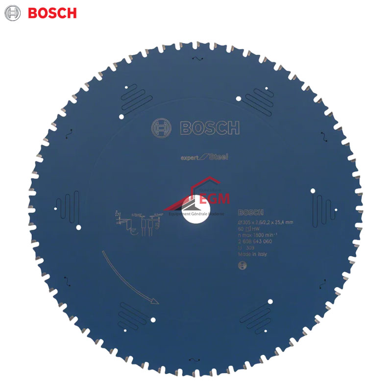 DISQUE CIRCUL CARBURE METAL 305X2.6X25.5 Z60 EXPERT FOR STEEL BOSCH