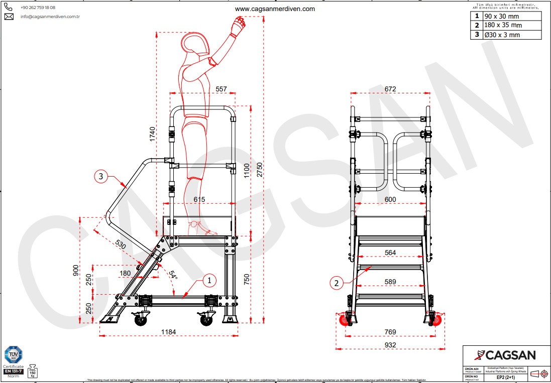 Transport facile : Lorsque vous descendez de la plateforme, vous pouvez facilement transporter le produit grâce aux roues. Grâce à cette fonctionnalité, la flexibilité est assurée dans votre espace de travail.