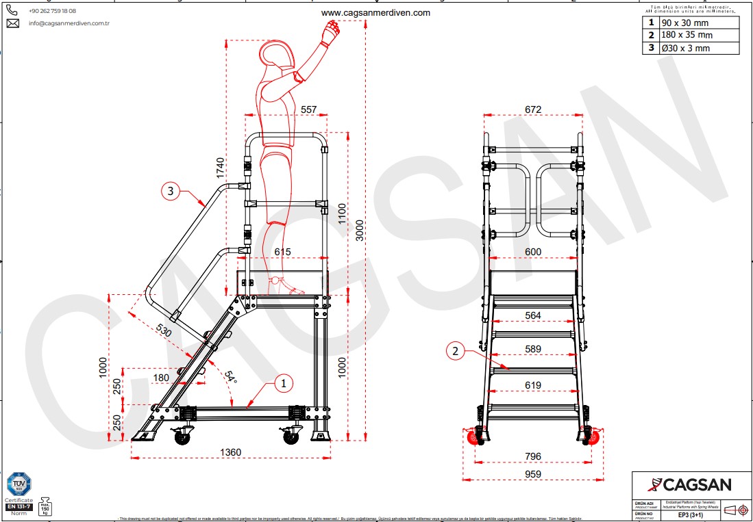 Transport facile : Lorsque vous descendez de la plateforme, vous pouvez facilement transporter le produit grâce aux roues. Grâce à cette fonctionnalité, la flexibilité est assurée dans votre espace de travail.