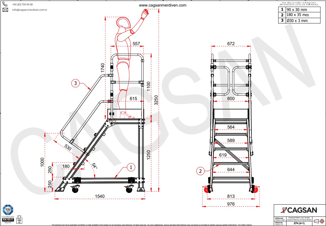 Transport facile : Lorsque vous descendez de la plateforme, vous pouvez facilement transporter le produit grâce aux roues. Grâce à cette fonctionnalité, la flexibilité est assurée dans votre espace de travail.