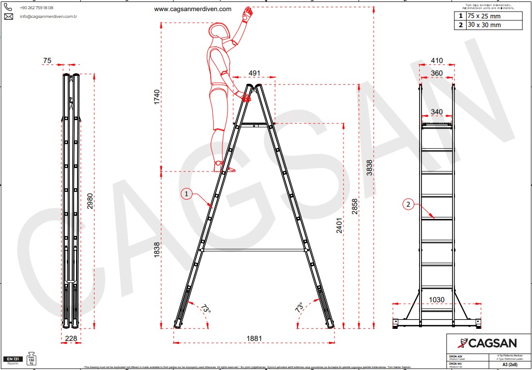 - Plate-forme en contreplaqué de 15 mm avec surface antidérapante résistante aux facteurs externes.