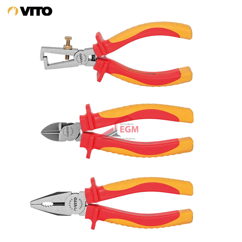 JEU DE 3 PINCE COUPANTE & UNIVERSELLE & DENUDER VDE 1000V VITO | EGM.tn - Tunisie