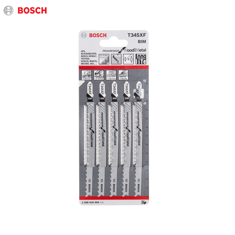 Le jeu de lames Bosch T345XF Progressor for Wood and Métal est conçu pour les coupes polyvalentes et précises dans une grande variété de matériaux tels que le bois, le métal, l’aluminium et le PVC.