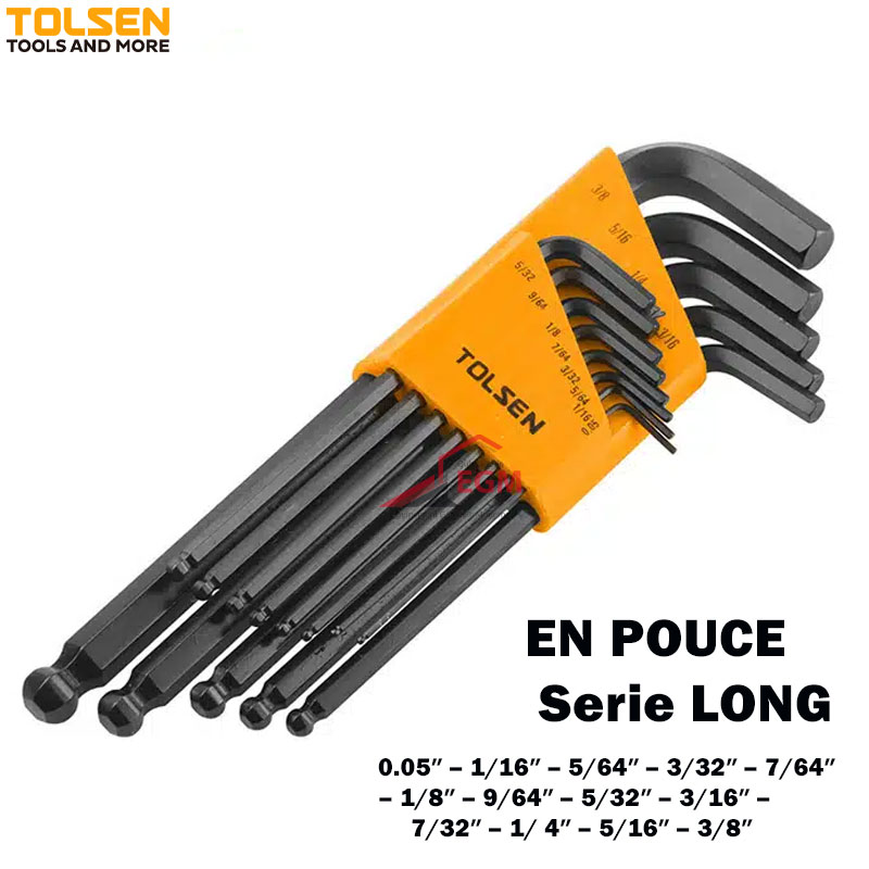 JX CLE MALE EN POUCE CR.V S.LONG BOUT SPH 0.05"A3/8" 13PCS TOLSEN | EGM.tn - Tunisie