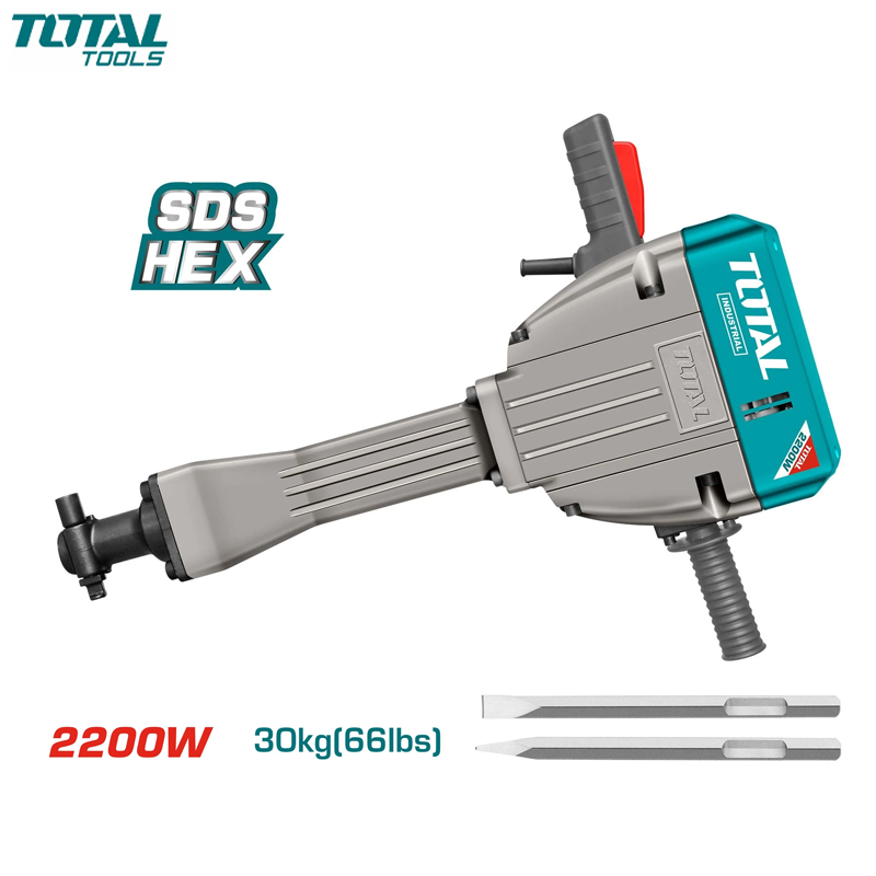 MARTEAU PIQUEUR HEX 2200W 30KG 75J 950 CPS/MIN AVEC CHARIOT TOTAL | EGM.tn - Tunisie