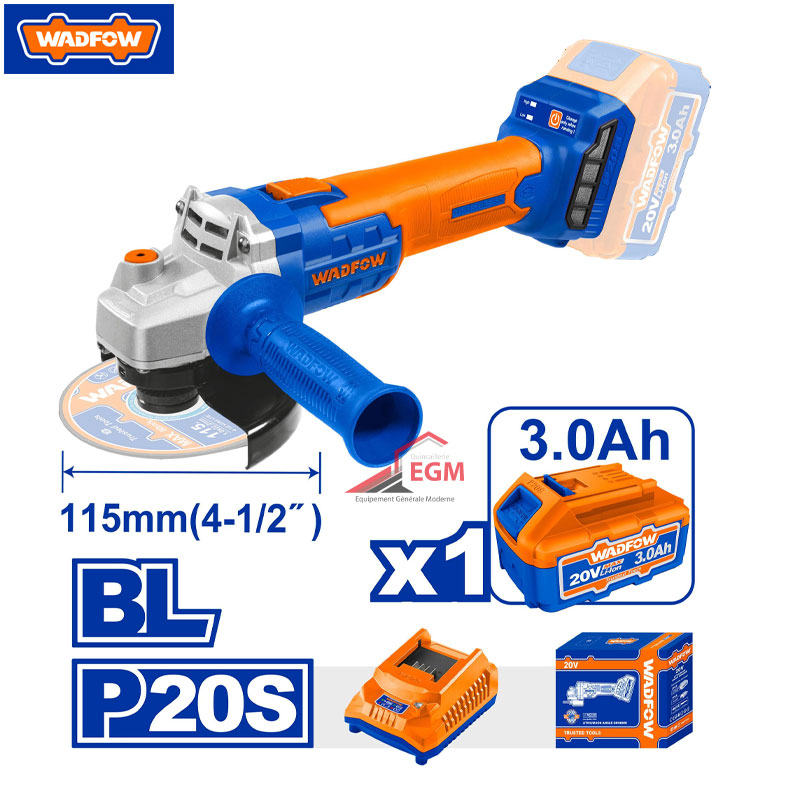 MEULE A DISQUE CHARG 115MM 20.0V 3.0Ah AVEC CHARG & BATTERIE WADFOW