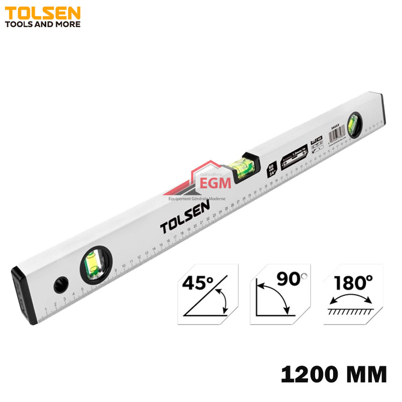 NIVEAU D'EAU EN ALUMINUM 45°/90°/180° 1200MM TOLSEN | EGM.tn - Tunisie