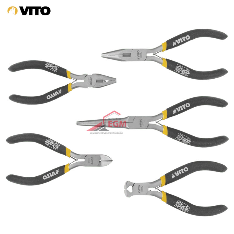 Jeu de 5 pinces pour l`électronique avec corps en acier chrome vanadium, poignée en PVC. Comprend également une trousse de rangement.