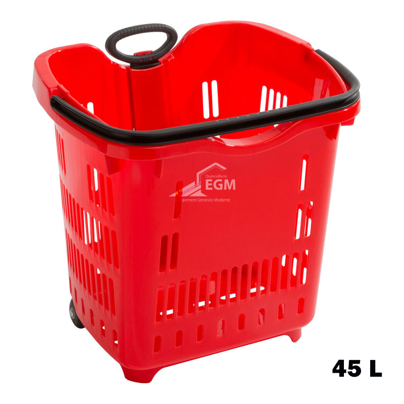 PANIER EN PLASTIQUE ROUGE & NOIR 45L A 2 ROUE POIGNE REGLABLE | EGM.tn - Tunisie