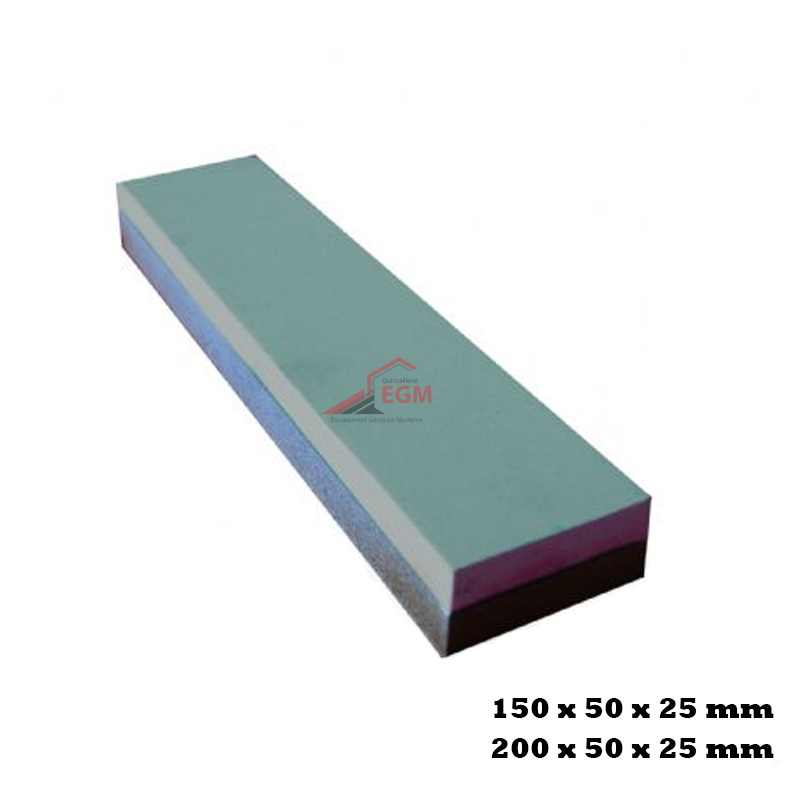 Référence : 305 Les pierres à huiles sont proposées au catalogue dans les dimensions suivantes (largeur x épaisseur x longueur) : rectangle : 150 x 50 x 25 mm rectangle : 200 x 50 x 25 mm