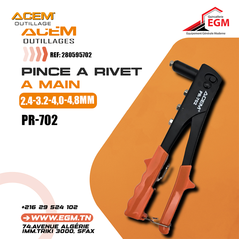 Tailles rivets compatibles : 2.4, 3.2, 4.0 et 4.8 mm