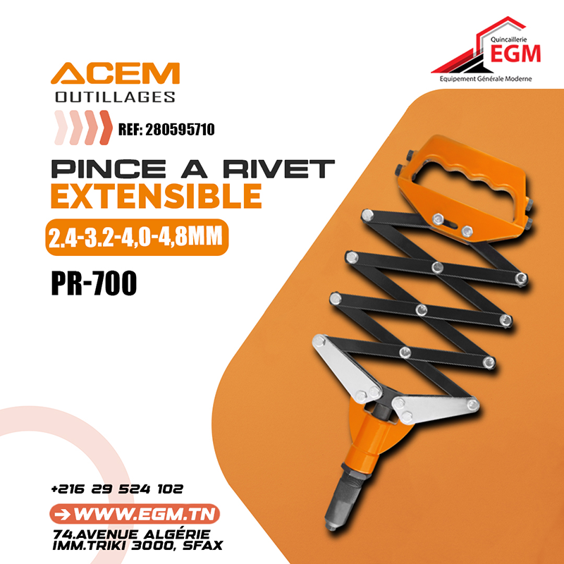 Avantages : Grande amplitude d’extension, idéale pour rivets de différents diamètres, robuste et durable