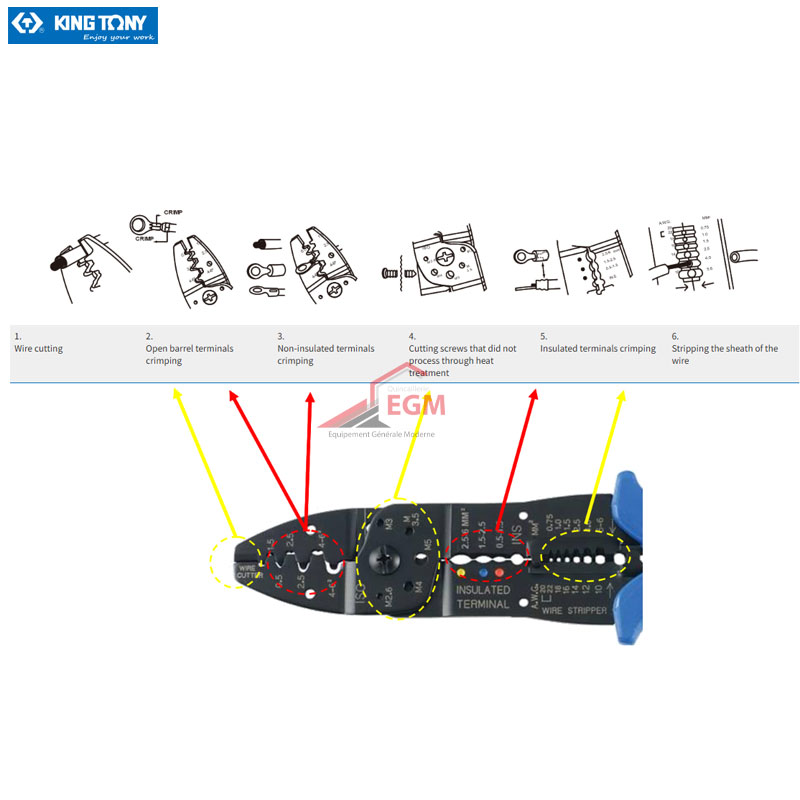 Coupe de fil Bornes à barillet ouvert Sertissage de bornes non isolées Sertissage Découpe de vis Bornes isolées Sertissage Dénudage de fil