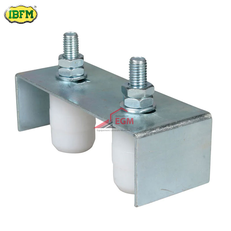 Plaque de guidage réglable à 2 niveaux pour portails coulissants.