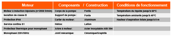 ■ Liquide pompé: propre, ne contenant pas de corps solides ou abrasifs, non visqueux, non agressif,non cristallisé et chimiquement neutre.
