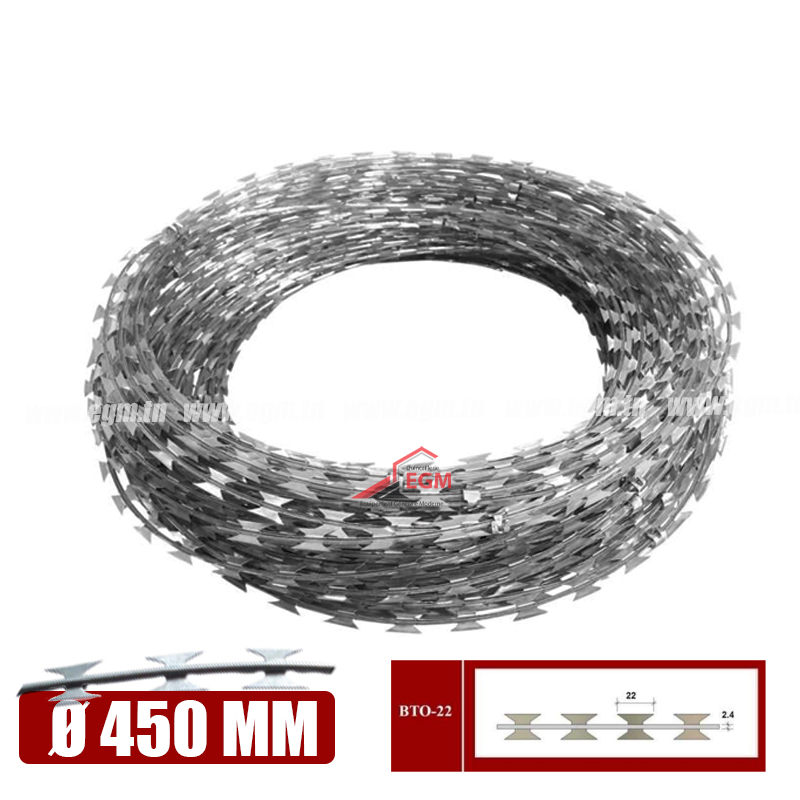 REAULEAU FIL BARBELE TYPE CONCERTINA D 450MM | EGM.tn - Tunisie