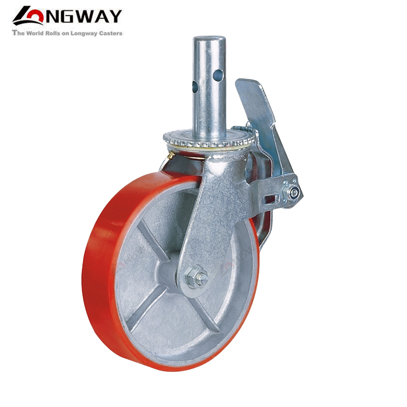 Roue échafaudage diamètre 200 en PU sur roue fonte, roulement à rouleaux (avec tige pleine) 1151 | EGM.tn - Tunisie