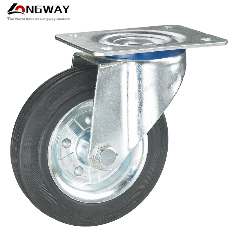 ROUE PIVO EN CAOUTCHOUC NOIR NOYAU EN ACIER A PLAQUE A-03