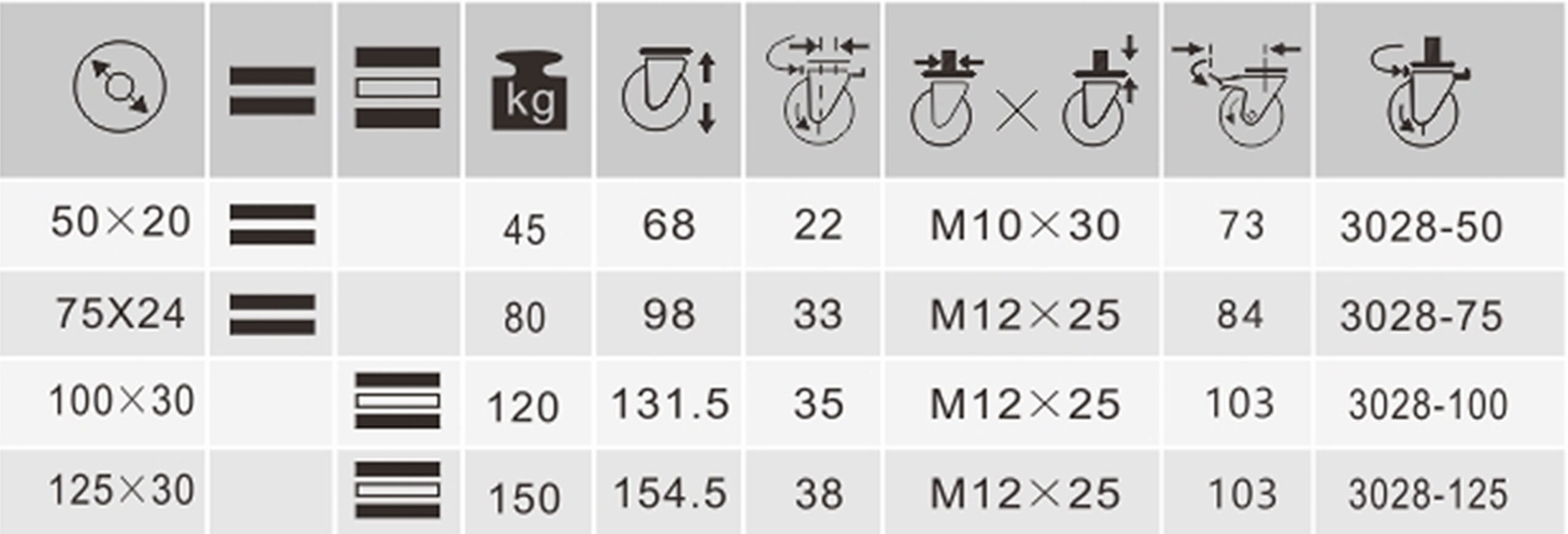3028 Roulette en nylon avec noyau en PP, palier lisse ou roulement à rouleaux
