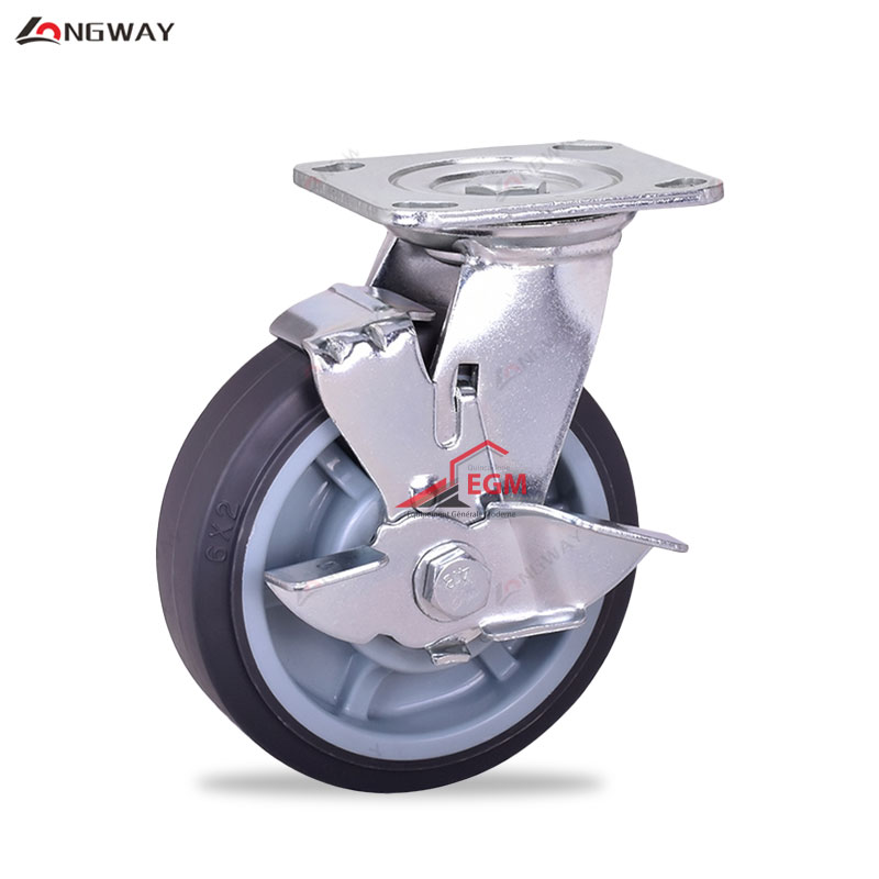 Roue pivotante en TPR gris noyau en PP a roulement a frein D(150/200) “1003” | EGM.tn - Tunisie