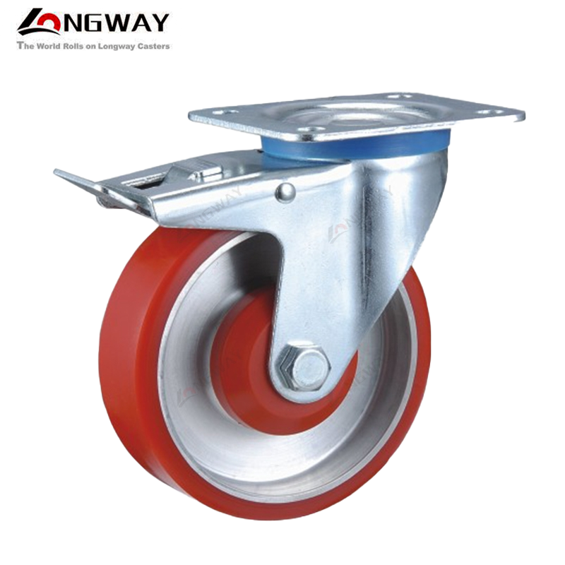 Roue pivotante sur plaque a frein PU en aluminium D(100 / 125)