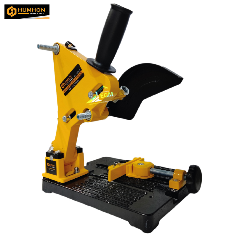 Référence : BK-AGS125 Support de meuleuse d'angle Ø 125 HUMHON Il aide à faire de la meuleuse d’angle un outil de coupe en métal, Idéal pour les coupes petites à moyennes, ce qu’il fait bien après avoir ajusté le moulin au support.