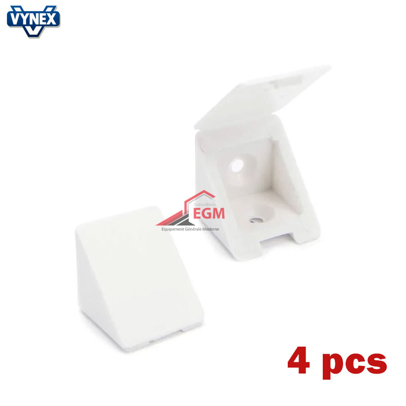 Ce taquet équerre simple de dimensions 24x23x23 est fabriqué par la marque VYNEX. Il est vendu par lot de 4. Sa couleur principale est blanc.