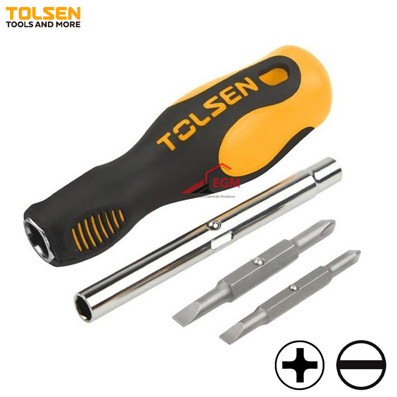 Le coffret comprend deux embouts double face en acier à outils CrV, un porte-embout double face avec six pans creux de 6,35 mm (1/4″) et 8 mm, servant également de rallonge. La longueur totale avec le porte-embout est de 170 mm et avec l’embout de 200 mm.