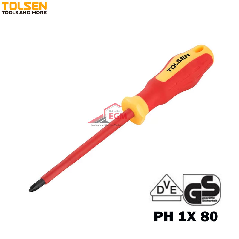 TOURNEVIS AMERICAIN ISOLE CR-V 1000V VDE PH 1X 80 TOLSEN | EGM.tn - Tunisie