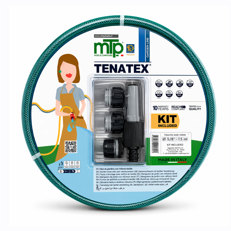 TUYAU ARROSAGE-15.0MM VERT TRESSE 15 METRE + LANCE & RACCORD TENATEX MTP ITALY | EGM.tn - Tunisie